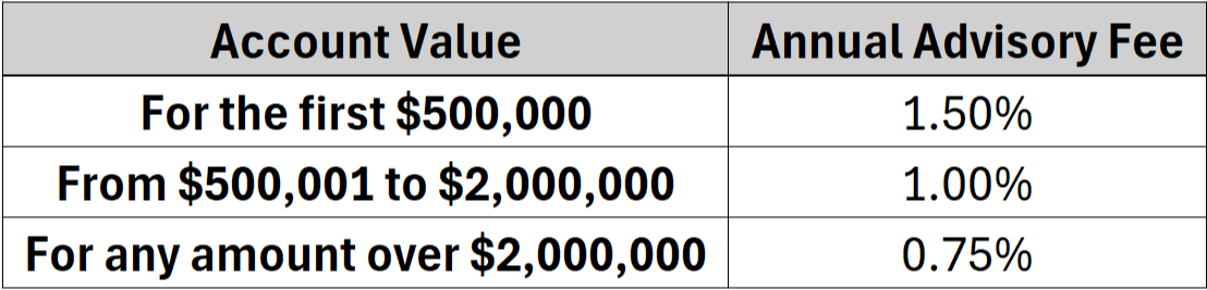 The blended fee is calculated based on a percentage of the total value of the investments we oversee and manage: